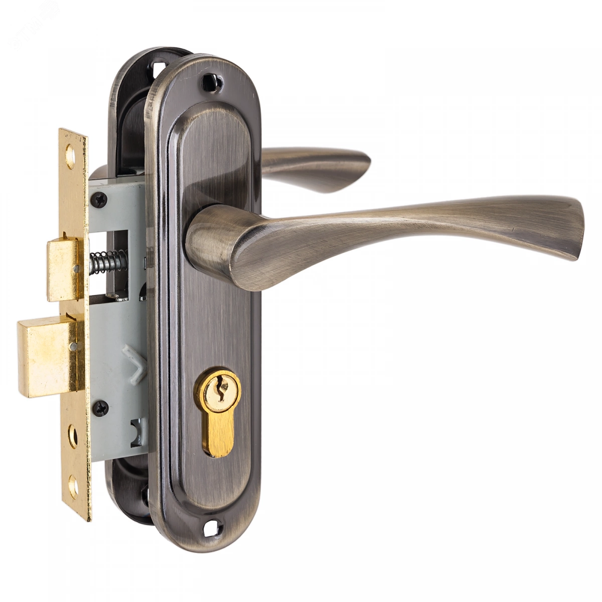 Замок врезной с ручками для деревянных дверей, СТАНДАРТ 103/50 AB старая бронза