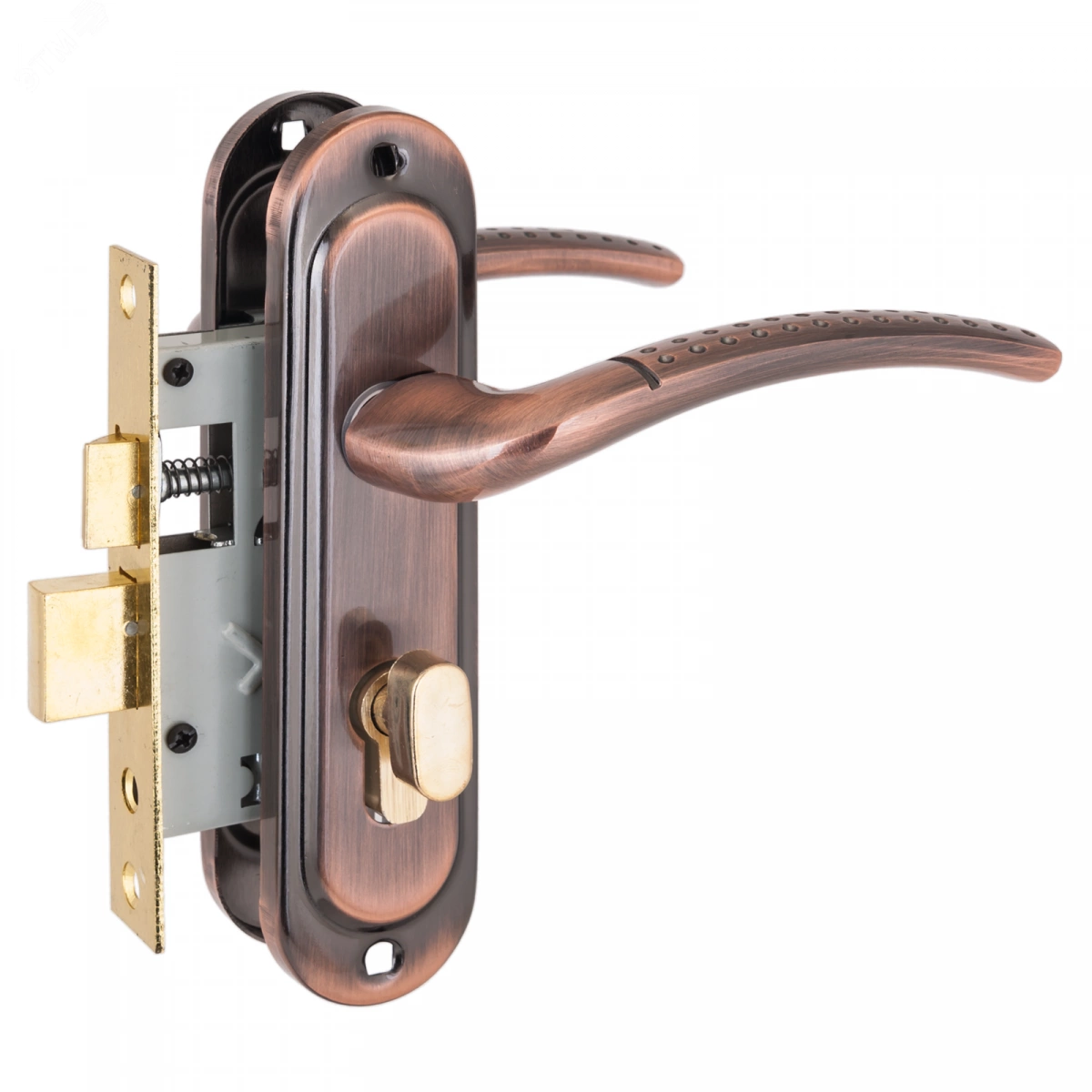 Замок врезной с ручками для деревянных дверей, СТАНДАРТ 132/50B вертушка AC старая медь