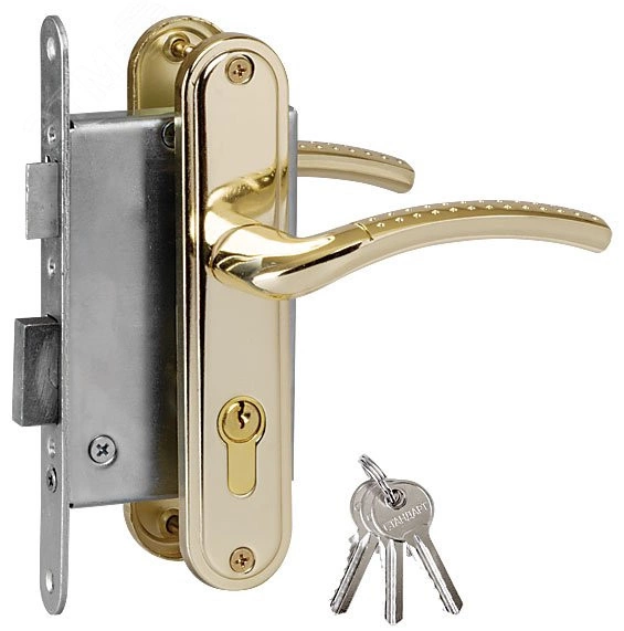 Замок врезной с ручками , цилиндровый. Предназначен для установки в деревянные двери толщиной 40-50мм, правого и левого открывания. Стальной оцинкованный корпус. Прямоугольный ригель из цинкового сплава, вылет 22мм. Межосевое расстояние 5мм. Удаление ключевого отверстия 55мм. Габаритный размер 85х130 мм. Материал - ручек - алюминиевый сплав, гальваническое покрытие. В комплекте - ответная планка, стяжки, цилиндр 60мм,3ключа. Упаковка - картонная коробка.