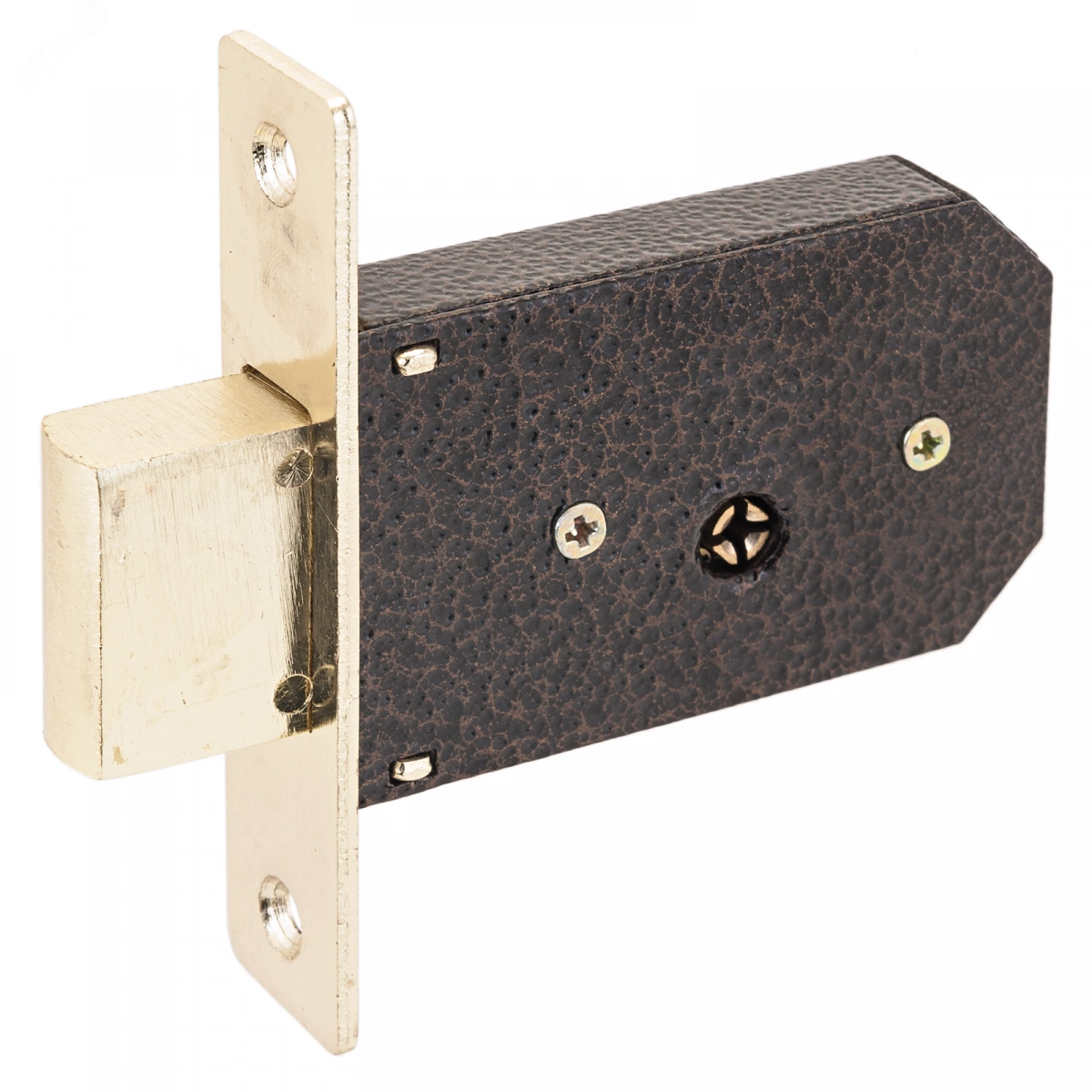 Замок врезной цилиндровый без ручек под крестообразный ключ для деревянных дверей, АЛЛЮР 90 латунь