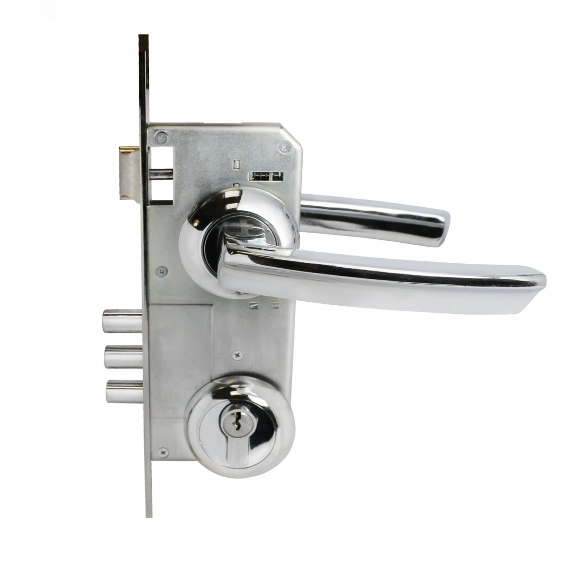 Замок врезной цилиндровый с ручками для деревянных дверей АЛЛЮР АРТ ЗВ4-85А.1120 хром