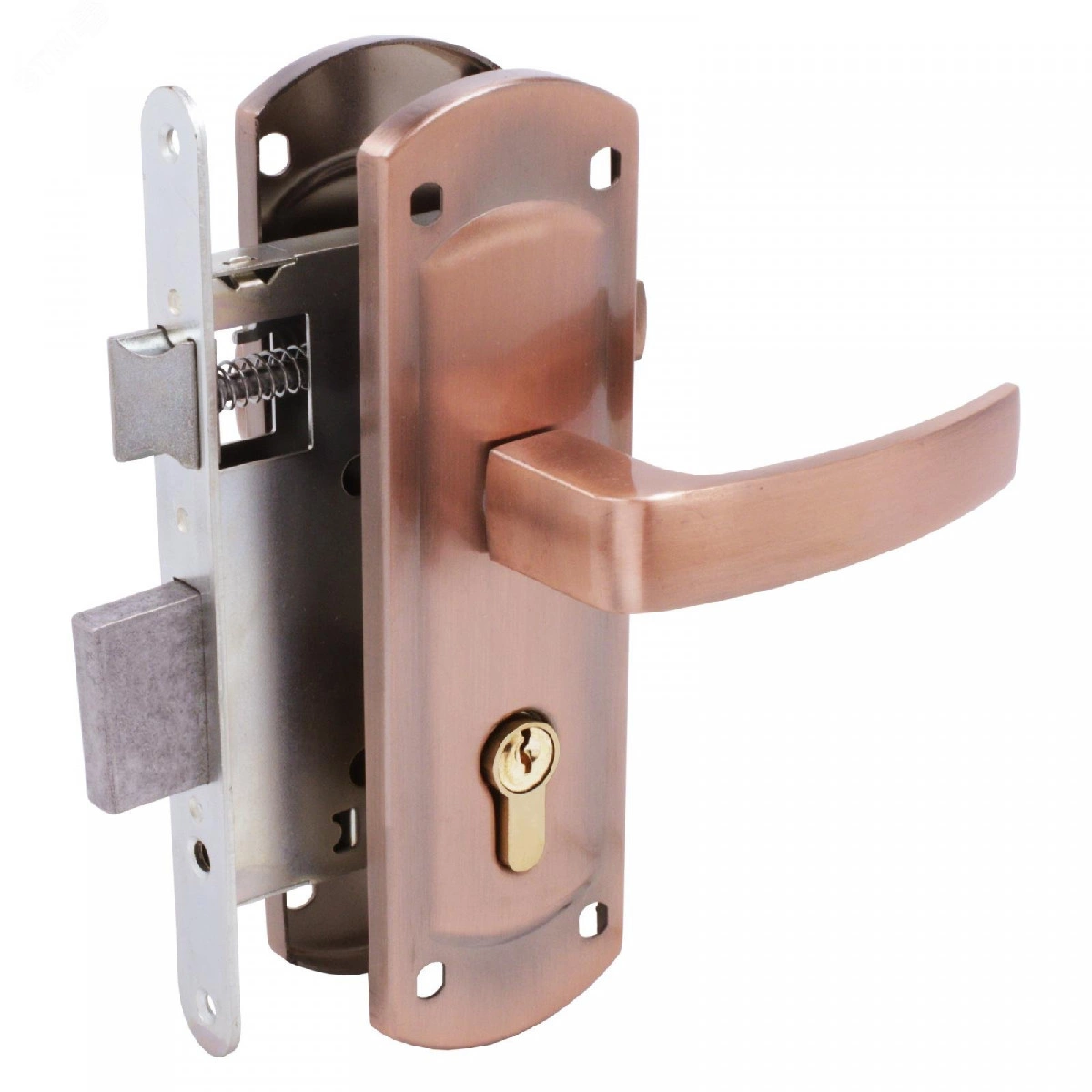 Врезной замок с ручками. Предназначен для установки в деревянные двери толщиной до 40мм. Прямоугольный ригель, вылет 24мм. Универсальная защелка. Корпус из оцинкованной стали. Межосевое расстояние - 55мм. Удаление ключевого отверстия - 55мм. Материал ручек — алюминиевый сплав , накладки — сталь. Многослойное гальваническое покрытие. Комплектация замок, ручки, ответная планка, усиленные винтовые стяжки,цилиндровый механизм 70мм.Гарантийный срок эксплуатации — 3 года.