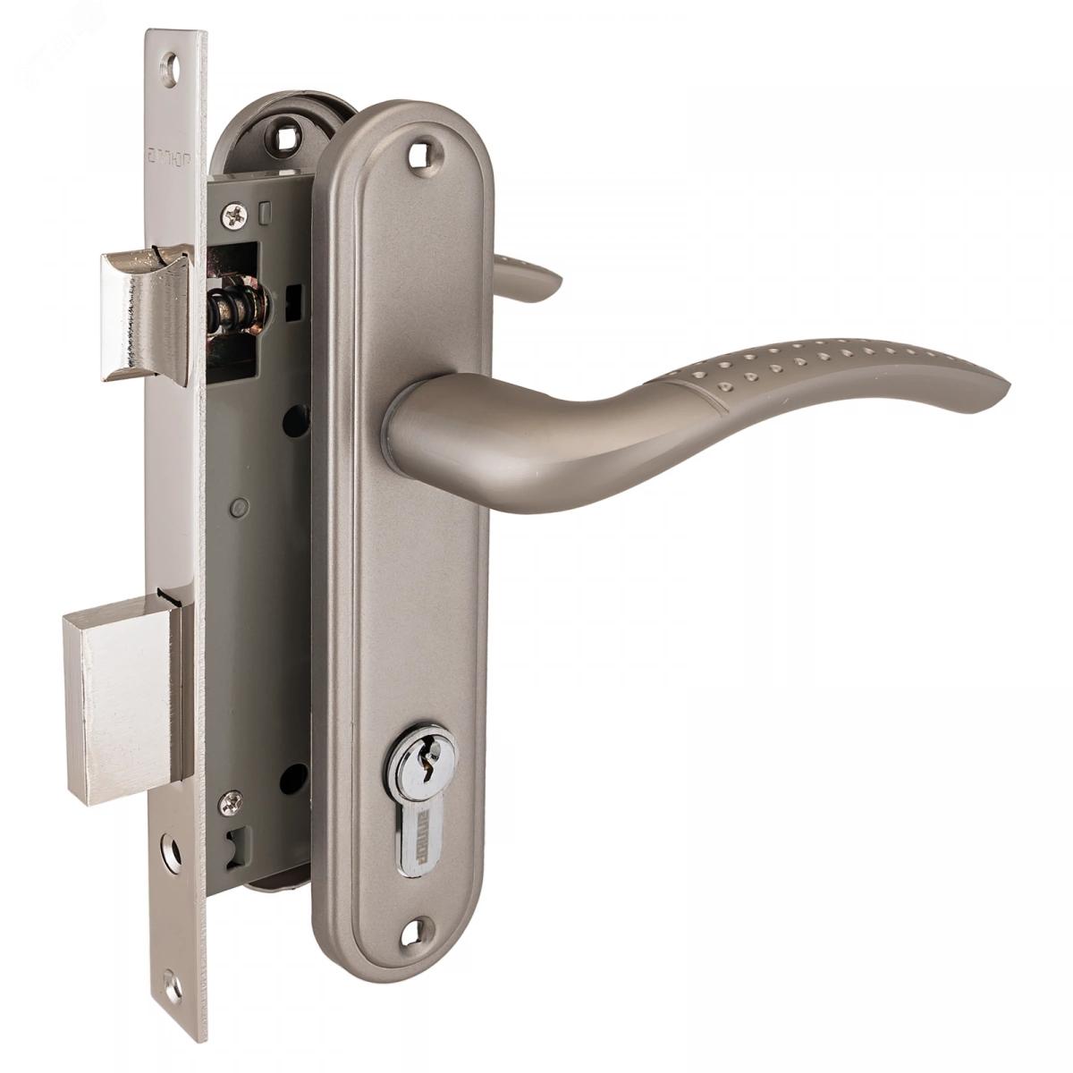 Замок врезной с ручками. Предназначен для установки в деревянные двери толщиной до 40мм, правого и левого открывания. Дверь может быть закрыта на защелку и открыта с помощью фалевой ручки при открытом засове замка. Прямоугольный ригель, вылет 20мм. Универсальная защелка. Стальной корпус, покрытие эмаль. Межосевое расстояние 70мм. Удаление ключевого отверстия 40мм. Материал ручек - алюминий. Гальваническое покрытие. Комплектация цилиндровый механизм 60мм, ответная планка, винтовые стяжки.