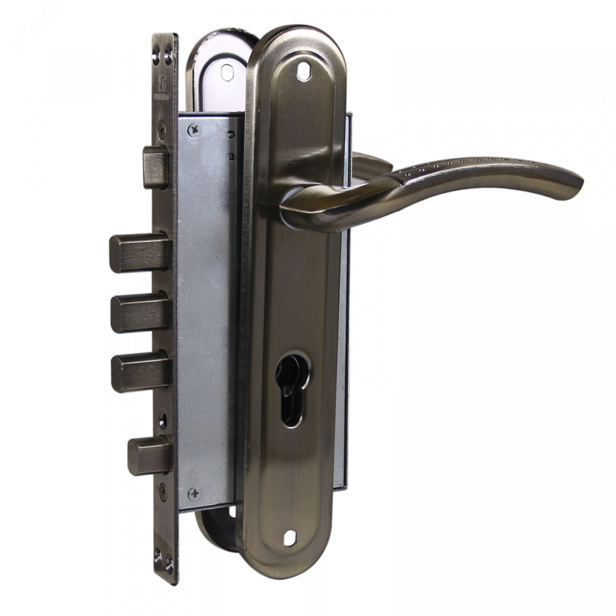 Замок врезной цилиндровый с ручками для мелаллических дверей АЛЛЮР ЗВ4-0526 AB-R старая бронза