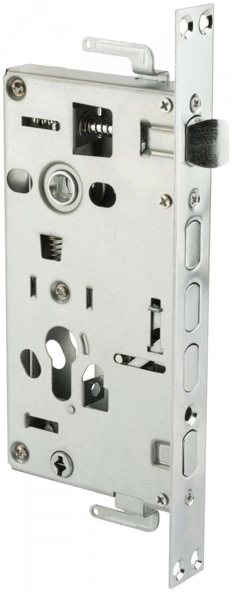 Замок врезной цилиндровый с защелкой и задвижкой без механизма секрета предназначен для установки в китайские металлические двери в качестве основного замка. Реверсивная защелка позволяет устанавливать замок на правые и левые двери. Замок ''Стандарт'' изготовлен из прочных материалов, устойчивых к износу, что гарантирует его долговечность и безупречную работу в течение многих лет.
