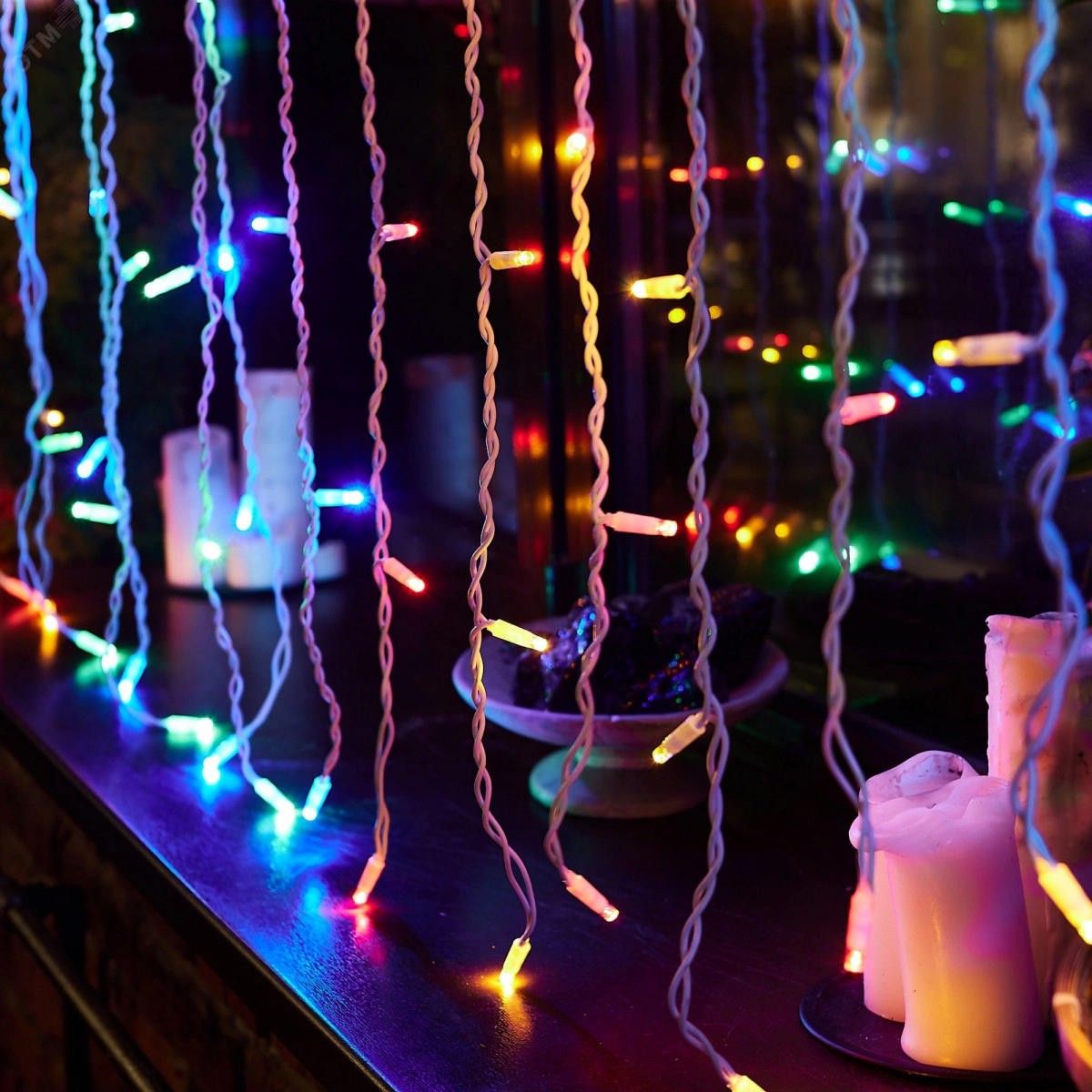 Занавес светодиодный с эффектом мерцания 3х2м Соединяемый 240 светодиодов Разноцветный свет Провод белый ULD-C2030-240/TWK MULTI IP67
