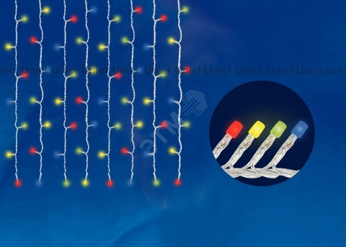 Занавес светодиодный с контроллером 240 светодиодов 2х3 м разноцветный IP20 провод прозрачный ULD-C2030-240/DTA MULTI IP20