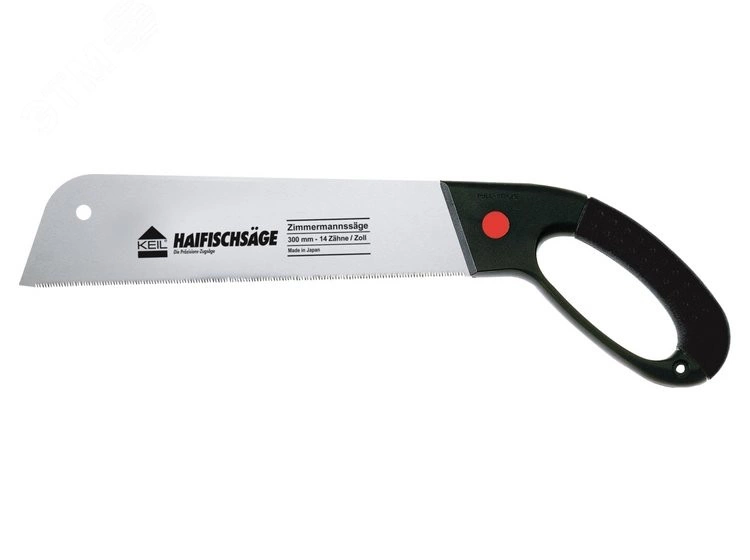 Сменное пильное полотно. Двухкомпонентная защищённая рукоятка. 14 зубьев на дюйм для плотницких работ, фанеры, древесины, пластмассы, твёрдой древесины и пр. 10 зубьев на дюйм для резания балок, древесины с сучками, строительного леса и пр. Полотна длиной 300 мм и 380 мм одинаково подходят для одной рукоятки.