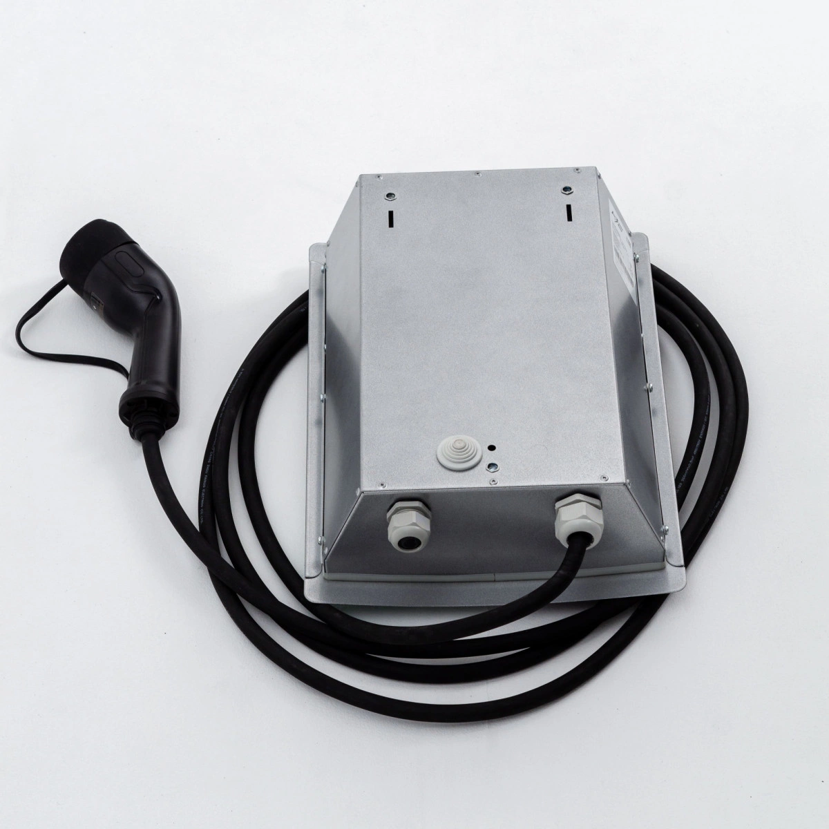 Медленная зарядная станция АС. Длина кабеля – 5 метров. Коннектор Type2 (ССS – европейский стандарт). Корпус – оцинкованная сталь, окрас порошковой краской. Подключение – внешняя проводка снизу, скрытая проводка сзади. Для размещения на стене в комплекте крепежная скоба. Подходит для автомобилей с повышенной емкостью аккумуляторов. Станция может управляться с помощью операторов ЭЗС в случае оплаты за зарядную сессию или работать в бесплатном режиме без оператора, начало зарядной сессии происходит автоматически. Встроенное УЗО. Предохранитель от скачков напряжения в внешней сети до 295В на фазу. Датчик внутренней температуры зарядной станции со снижением зарядной мощности при достижении температуры свыше 65 С. Российское ПО - обновление станции через облачные сервисы. Протокол шифрования и информационной безопасности WSS, принятый в РФ.