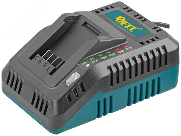 21,5 В, 4,5 А, 1,8 м, 0,45 кг, коробка. Предназначен для зарядки АКБ единой аккумуляторной системы FIT THE ONE. Быстрая зарядка АКБ 2,0 Ач 79935 за 55 минут. Быстрая зарядка АКБ 4,0 Ач 79936 за 65 минут. Индикатор заряда батареи.