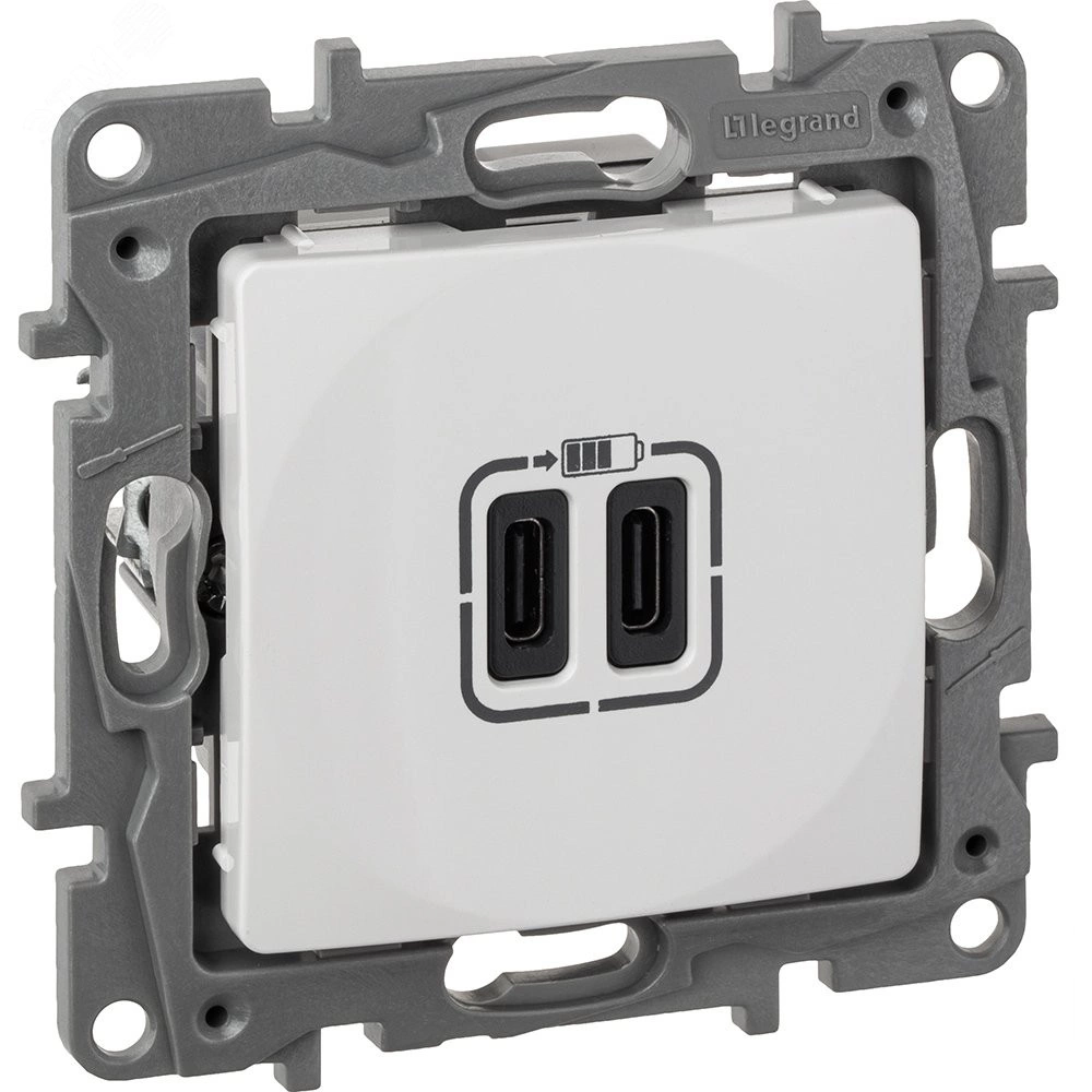 Полное описание: Зарядное устройство с двумя USB-разьемами тип C-тип С 240В/5В 3000мА - Etika - Цвет Белый