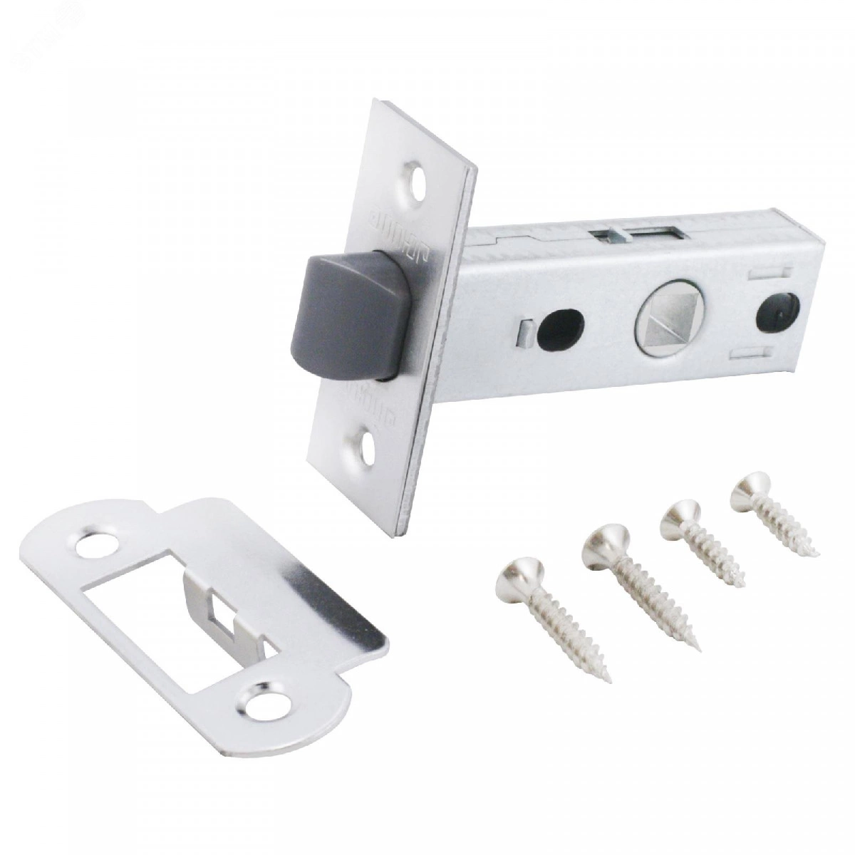Универсальная защелка врезная для установки на деревянные межкомнатные двери. Малошумный язычок защелки из ударопрочного пластика под цвет торцевой планки. Материал корпуса - сталь оцинкованная штампованная, гальваническое покрытие. Под ручку с квадратом 8мм. Удаление ключевого отверстия - 45мм. Ширина планки - 25мм. Габариты корпуса - 72.5х22х15мм. В комплекте - защелка, ответная планка и белый пластиковый вкладыш к ней, саморезы.