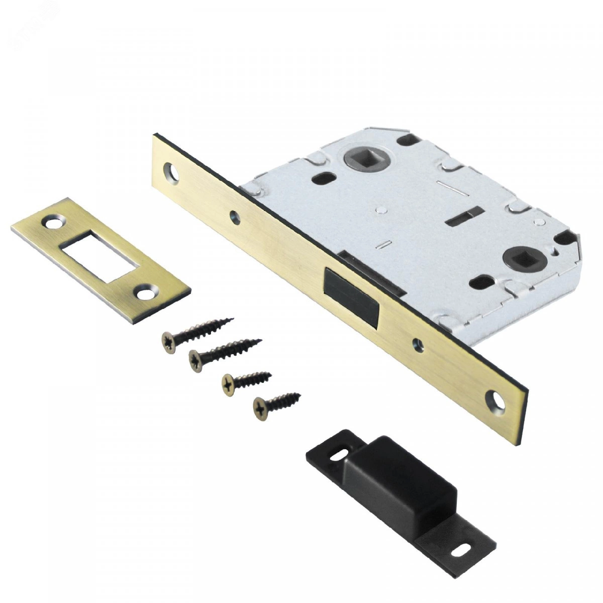 Универсальная магнитная защелка врезная для установки на деревянные межкомнатные двери. Материал - сталь, магнит, гальваническое покрытие.Под ручку с квадратом 8мм и сантехническую завертку с квадратом 6мм. Удаление ключевого отверстия - 50мм. Межосевое расстояние - 70мм. Прямоугольная торцевая планка. Ширина планки - 20мм. Габариты корпуса - 97х75х12мм. В комплекте - защелка, саморезы, ответная планка.