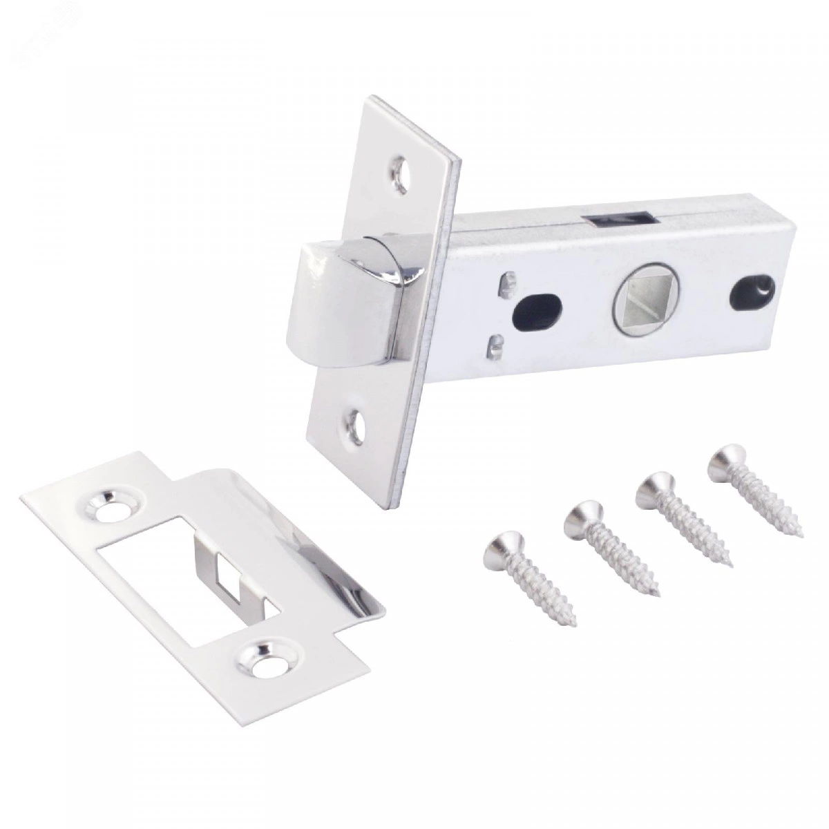 Универсальная защелка врезная для установки на деревянные межкомнатные двери. Материал - сталь оцинкованная штампованная, гальваническое покрытие. Под ручку с квадратом 8мм. Удаление ключевого отверстия - 45мм. Торцевая планка с защитной пленкой для сохранения покрытия. Ширина планки - 25мм. Габариты корпуса - 72.5х22х15мм. В комплекте - защелка, ответная планка и белый пластиковый вкладыш к ней, саморезы.