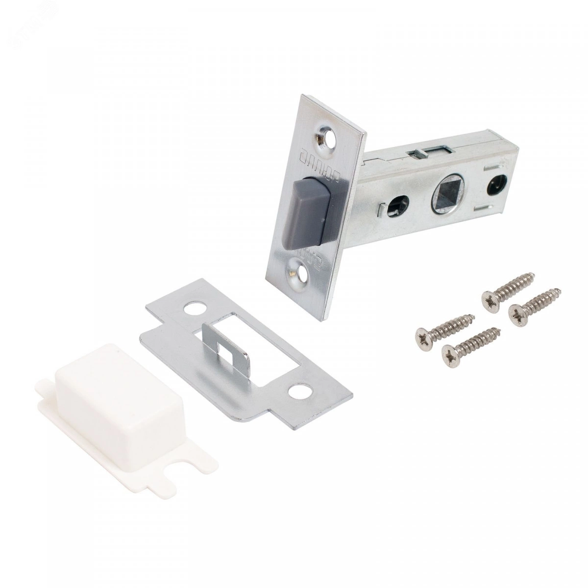АЛЛЮР АРТ L45-8-P SC матовый хром пластик торц.планка 25мм б/ручек Защёлка (100). Универсальная защёлка врезная для установки на деревянные межкомнатные двери. Малошумный язычок защелки из ударопрочного пластика под цвет торцевой планки. Материал корпуса - сталь оцинкованная штампованная, гальваническое покрытие. Под ручку с квадратом 8 мм. Удаление ключевого отверстия - 45 мм. Ширина планки - 25мм. Габариты корпуса - 72.5х22х15 мм. В комплекте - защелка, ответная планка и белый пластиковый вкладыш к ней, саморезы.
