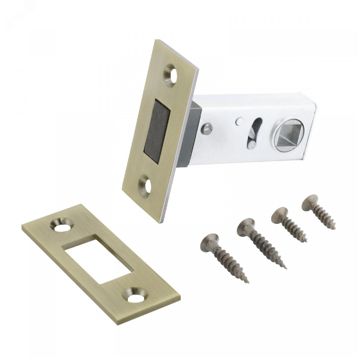 АЛЛЮР АРТ L50-8M AB ст.бронза магнитная б/ручек Защёлка (100). Универсальная магнитная защёлка врезная для установки на деревянные межкомнатные двери. Материал - сталь оцинкованная штампованная, магнит, гальваническое покрытие. Под ручку с квадратом 8 мм. Удаление ключевого отверстия - 50 мм. Ширина планки - 25мм. Габариты корпуса - 63х22,5х15 мм. В комплекте - защелка, ответная планка и саморезы. Использование магнитов позволяет добиться бесшумности в работе.