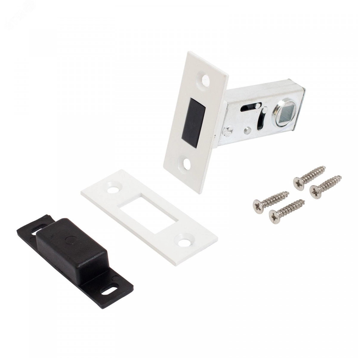 АЛЛЮР АРТ L50-8M W матовый белый магнитная б/ручек Защёлка (100). Универсальная магнитная защёлка врезная для установки на деревянные межкомнатные двери. Материал - сталь оцинкованная штампованная, магнит, гальваническое покрытие. Под ручку с квадратом 8 мм. Удаление ключевого отверстия - 50 мм. Ширина планки - 25мм. Габариты корпуса - 63х22,5х15 мм. В комплекте - защелка, ответная планка и саморезы. Использование магнитов позволяет добиться бесшумности в работе.