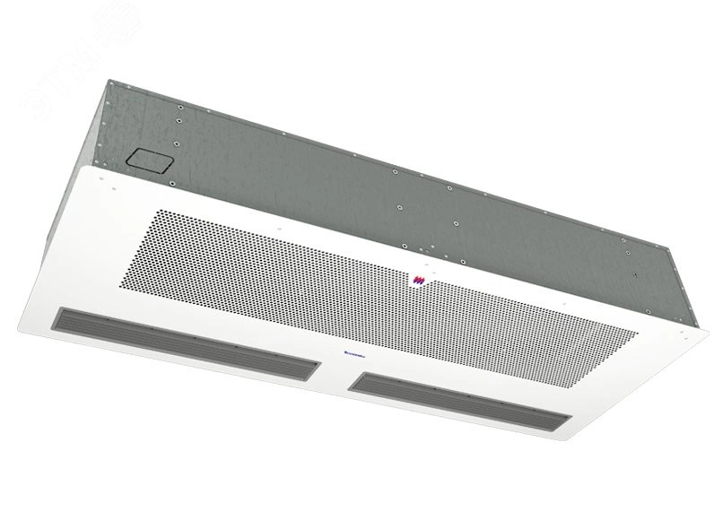 Встраиваемая потолочная воздушная завеса для проёмов высотой до 4,5 метров. Завеса без источника тепла предназначена для скрытой установки за подвесным потолком. Сервис и обслуживание осуществляется через переднюю панель завесы.