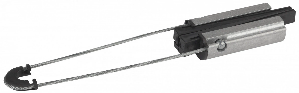 Используется для натяжения изолированной несущей нейтрали (СИП-2) на магистральных и осветительных линиях. При монтаже проводник или кабель закладывается в зажим между клиньями и зажимается. Корпус зажима выполнен из алюминиевого сплава, внутренняя вставка и клинья из устойчивой к ультрафиолетовым излучениям пластмассы.
