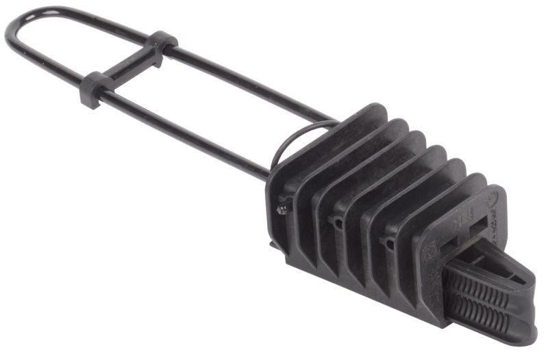 Зажим ЗАБ 16-25 не требует инструмента для монтажа, а легко снимаемая дужка зажима позволяет крепить его к кронштейнам и крюкам. Длина дужки варьируется от 90 до 150 мм, она также снабжена дополнительным фиксатором, не позволяющим ей выскочить из клинового нажима, например, во время повышенных ветровых нагрузок.