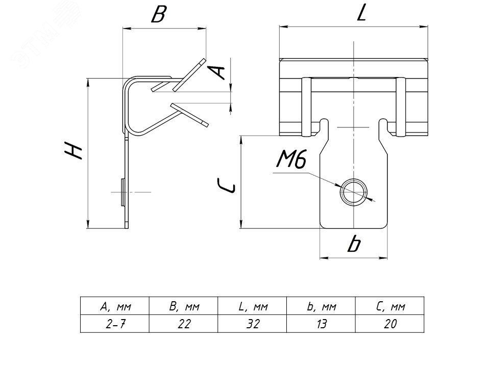 Зажим балочный 3-8мм с резьбой М6 PROxima