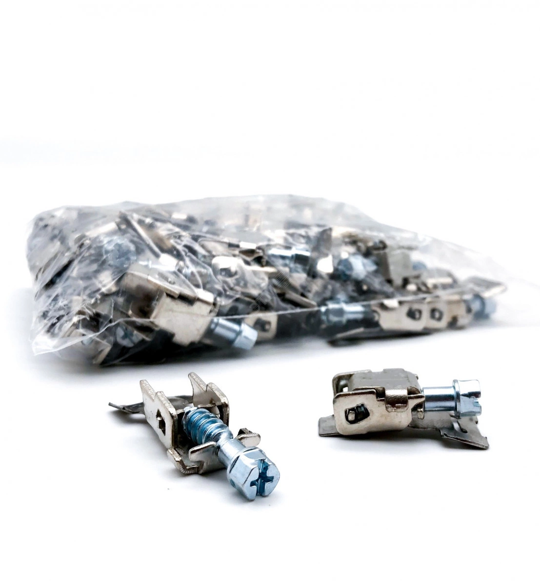 Зажим с открывающимися замками, которые поставляются в пакетах по 50 и 100 штук, предназначен для использования с хомутной лентой.