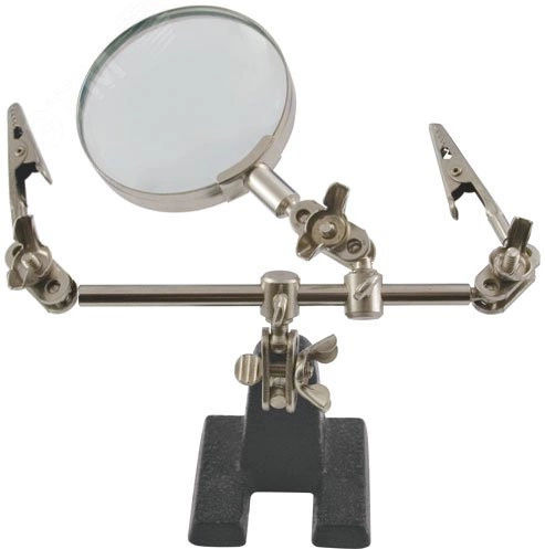 Зажим для пайки с лупой. Имеет устойчивую литую станину и зажимы, фиксирующие деталь при работе. 62 мм лупа с 3-х кратным увеличением позволяет работать с мелкими деталями и проводами. Упаковка - блистер.