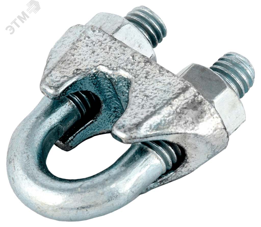 Зажим для троса DIN 741 из оцинкованной стали помогает быстро срастить два стальных каната и на концах изготовить жесткие разъемные петли. Тросовый зажим состоит из литой колодки и U-образной скобы. Фиксация троса производится путем закручивания шестигранных гаек.