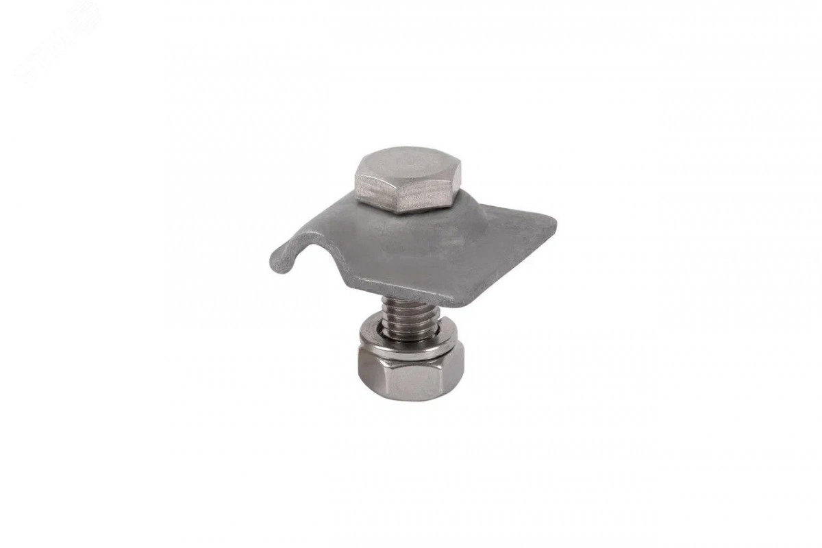 Эта пластина-клемма изготовлена из горячеоцинкованной стали и комплектуется болтом, шайбой и гайкой из нержавеющей стали. Она предназначена для быстрого и надежного монтажа проволоки диаметром от 8 до 10 мм (типа круглых проводников Rd 8 и Rd 10) к металлическим конструкциям.
