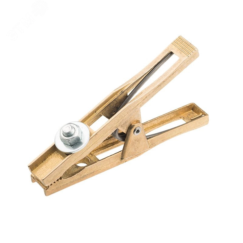 Клемма заземления предназначена для присоеденения сварочного кабеля к заземлению. Идеально подходит для комплектования профессиональных и бытовых сварочных аппаратов. Изготовлена из материалов повышенной электропроводности (латунь ЛС 59- 1). Оснащена мощной пружиной.