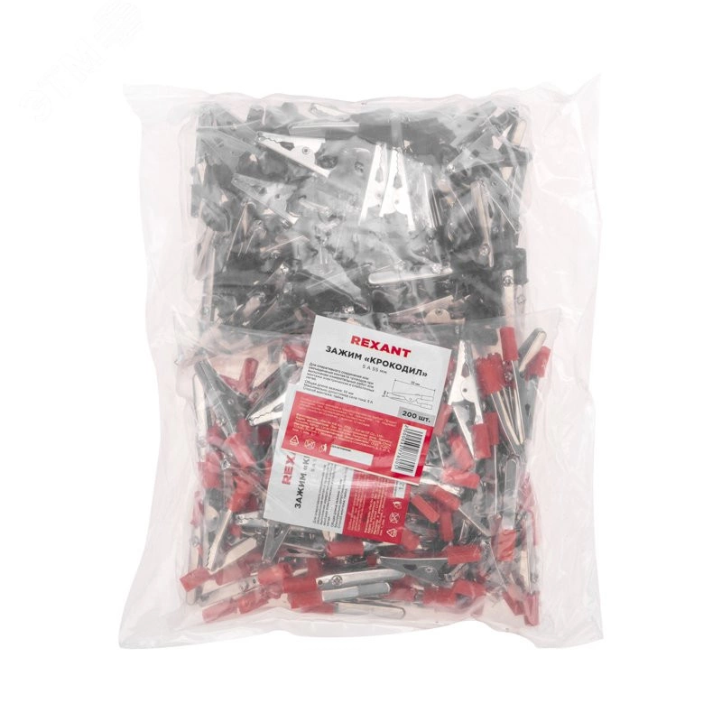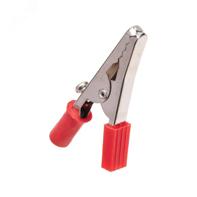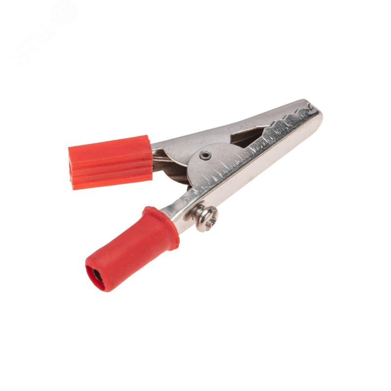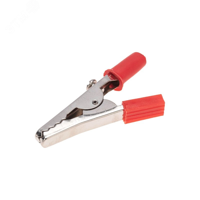Зажим 'крокодил' 5А 55мм представляет собой электромеханическое устройство, предназначенное для оперативного соединения или разъединения контакта проводов при выполнении измерительных работ или монтажа электрических и слаботочных сетей. Зажим получил свое название за схожесть с челюстями крокодила. Состоит он из двух фигурных деталей с 'крокодильими' зубцами, скрепленных серединами специальным штифтом и способных поворачиваться на некоторый угол вокруг оси соединения. К одной из деталей монтируется контактный провод. Сжатие 'челюстей' обеспечивается пружиной, вставленной с другой стороны штифта. Контактная часть изделия изготавливается из стали с никелированным покрытием. В целях безопасной эксплуатации зажима, ручки имеют изоляцию, изготовленную из ПВХ, что предохранит от поражения специалиста электрическим током. Чаще всего зажимы применяются парами черного и красного цвета (50/50).