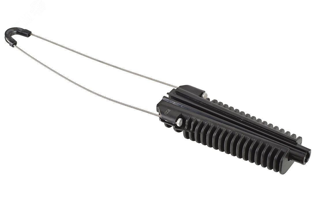 Предназначен для подвески круглых самонесущих кабелей типа ОКСН диаметром от 12 до 16 мм при воздушной прокладке. Аналог зажима ACADSS 14. Состоит из открытого конического корпуса, усиленного стекловолокном, пары пластиковых клиньев и гибкой петли из нержавеющей стали 350 мм. Внешний вид изделия, может отличаться от представленного на сайте, с сохранением технических характеристик.