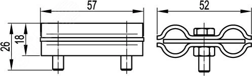 Параллельный зажим с разделительной пластиной применяется для параллельного соединения круглых проводников диаметром 8-10 мм. Материал - медь.