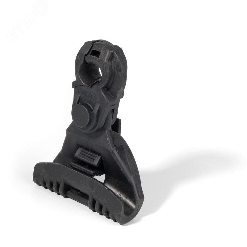 Предназначен для крепления изолированной несущей нейтрали СИП до 1 кВ. Используется для подвески СИП на промежуточных и угловых опорах при углах поворота линии до 60 градусов. Нейтраль фиксируется регулируемым зажимом. Подвижное соединение позволяет зажиму двигаться в продольном и поперечном направлениях. Зажим крепится к опорам на крюки или к кронштейнам. Изготовлен из погодо- и ультрафиолетостойкого полимера, усиленного стекловолоконной структурой. Вес - 0.16 кг