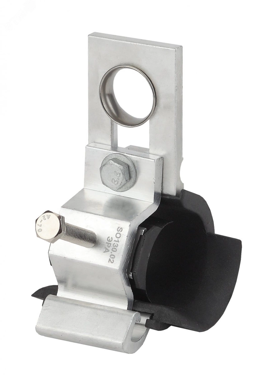 Используется для поддерживающего крепления изолированной несущей нейтрали на промежуточных опорах. Зажимы снабжены болтами со срывной головкой, осуществляющей срыв в момент, когда натяжение полимерных вставок обеспечивает надежную фиксацию проводника. Это предотвращает выскальзывание проводника в процессе эксплуатации.