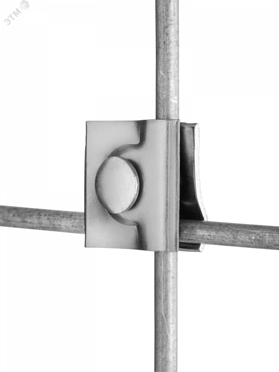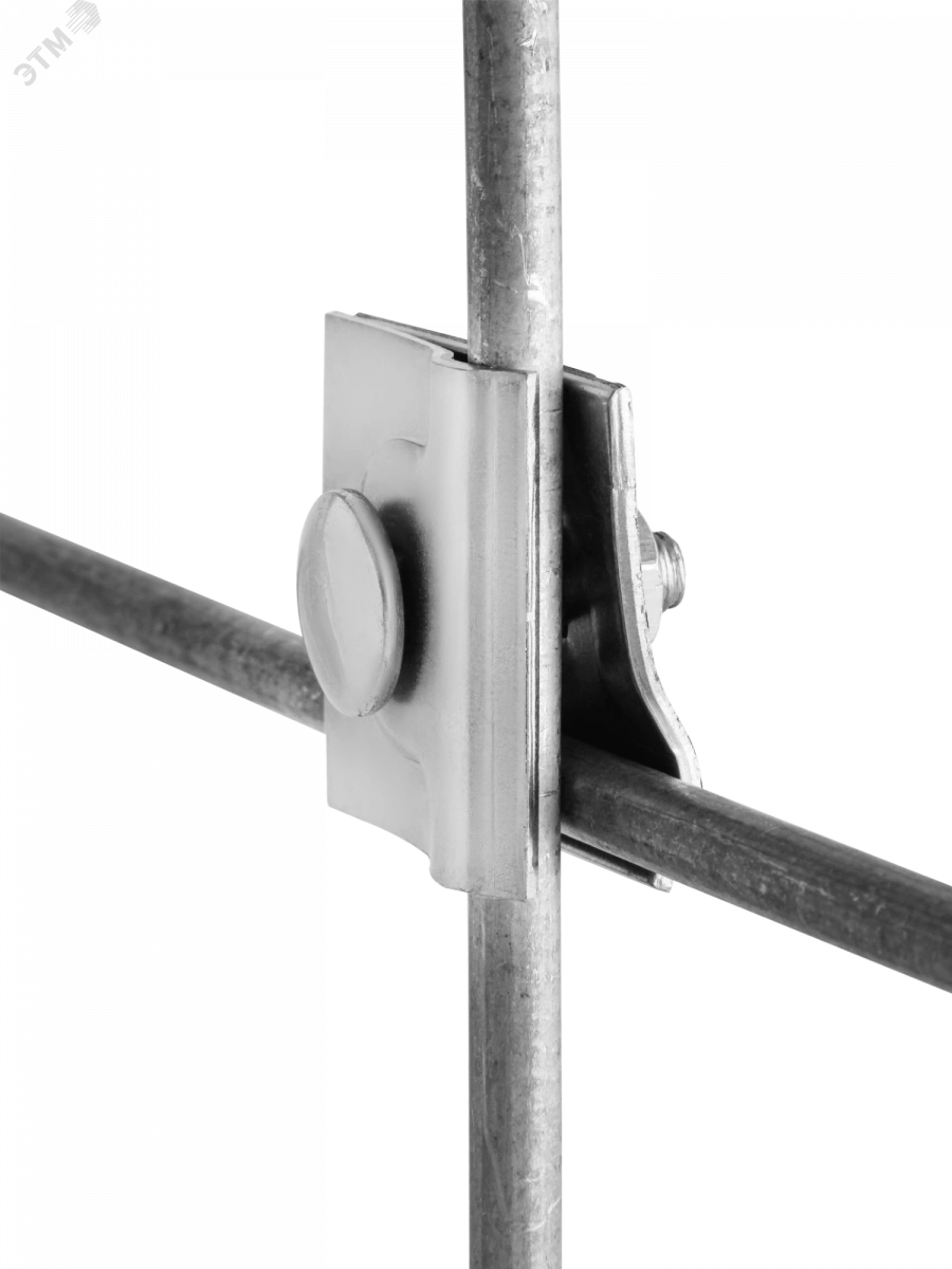 Зажим выполнен из оцинкованной стали, имеет крестовидную форму осуществляет функцию параллельного, перпендикулярного, а также последовательного соединения токоотвода диаметром 8…10 мм.
