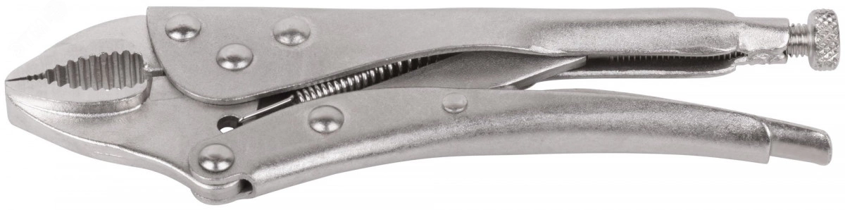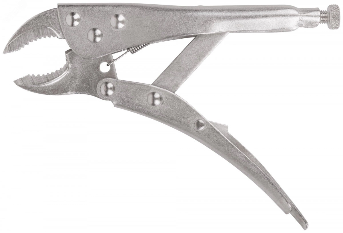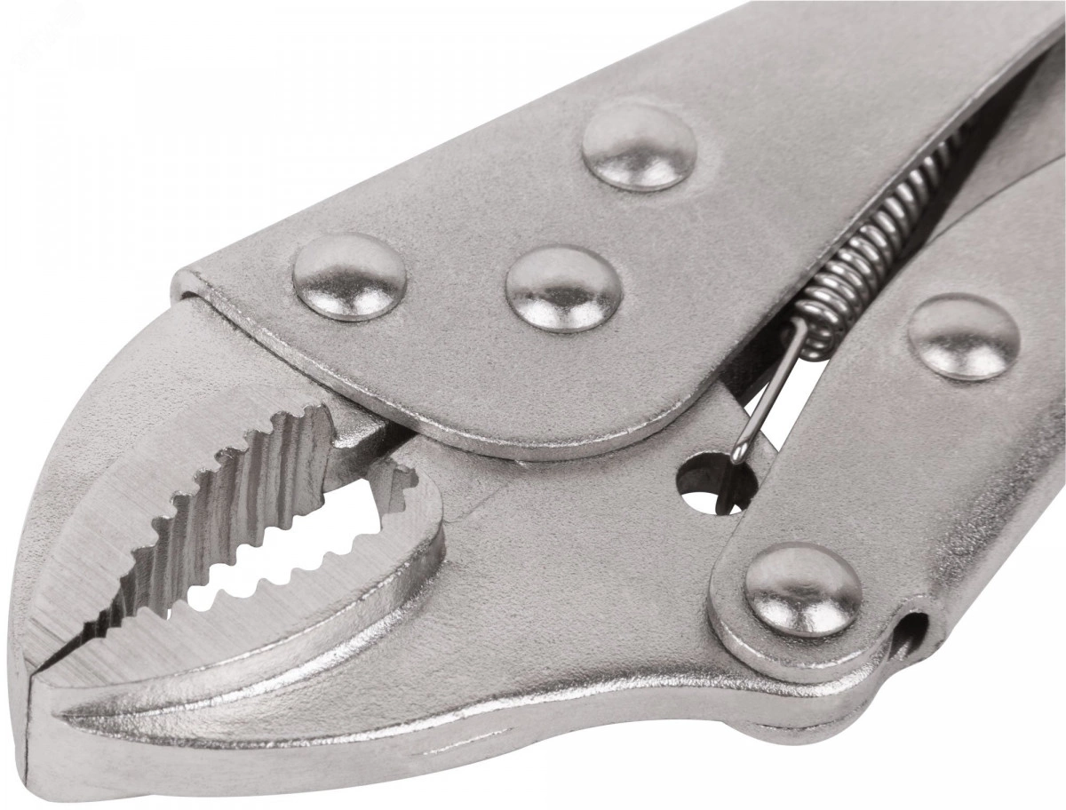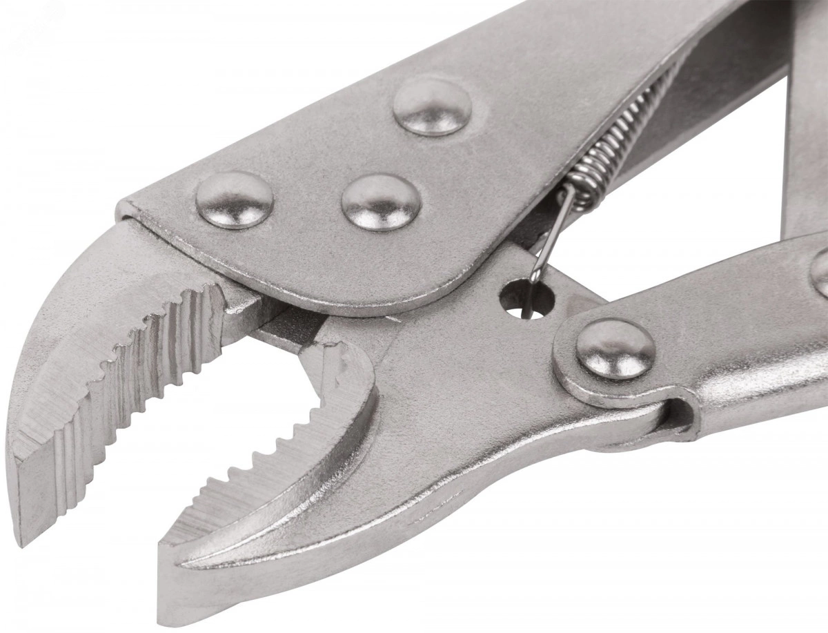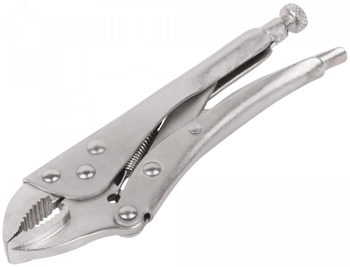 Зажим ручной КУРС с полукруглыми губками предназначен для фиксации усилия на предмете при проведении слесарных, сварочных и монтажных работ. Зажимы могут использоваться в качестве трубного ключа. Степень сжатия регулируется винтом. Рабочие губки имеют противоскользящую ребристую поверхность. Зажимы изготовлены из качественной инструментальной стали, что обеспечивает долгий срок службы инструментов. Никелевое покрытие предотвращает коррозию.