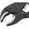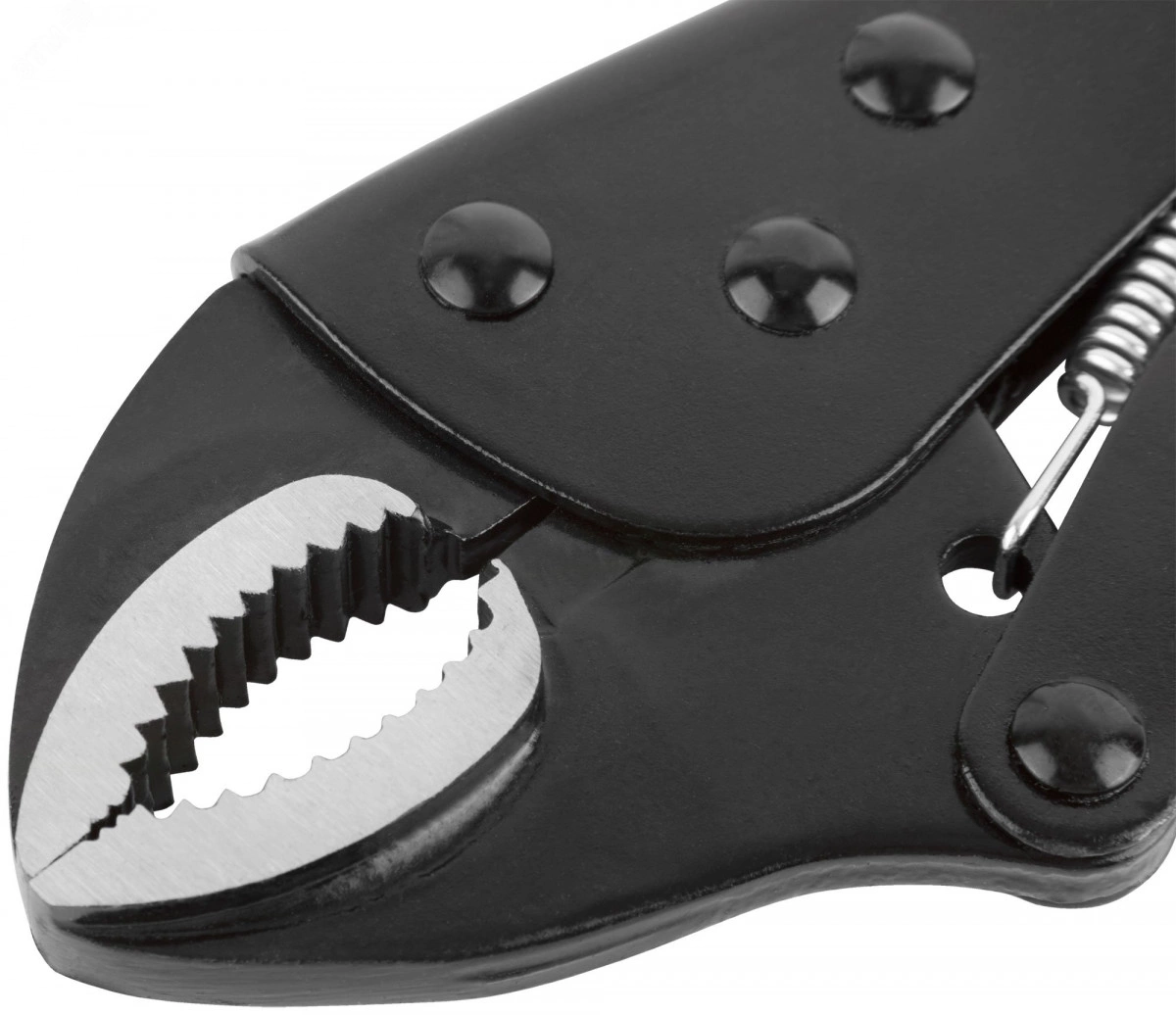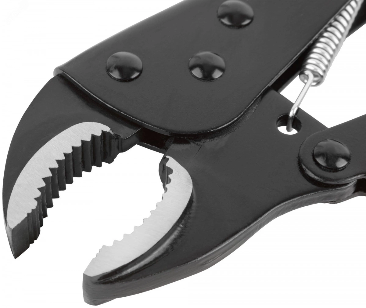 Зажим ручной FIT IT предназначен для фиксации усилия на предмете при проведении слесарных, сварочных и монтажных работ. Зажим изготовлен из инструментальной стали с черным оксидным покрытием. Чернение позволяет снизить активность коррозионных процессов, а также уменьшить коэффициент трения, тем самым продлевая срок службы инструмента. Зажимы могут использоваться в качестве трубного ключа. Степень сжатия регулируется винтом. Рабочие губки имеют противоскользящую ребристую поверхность.