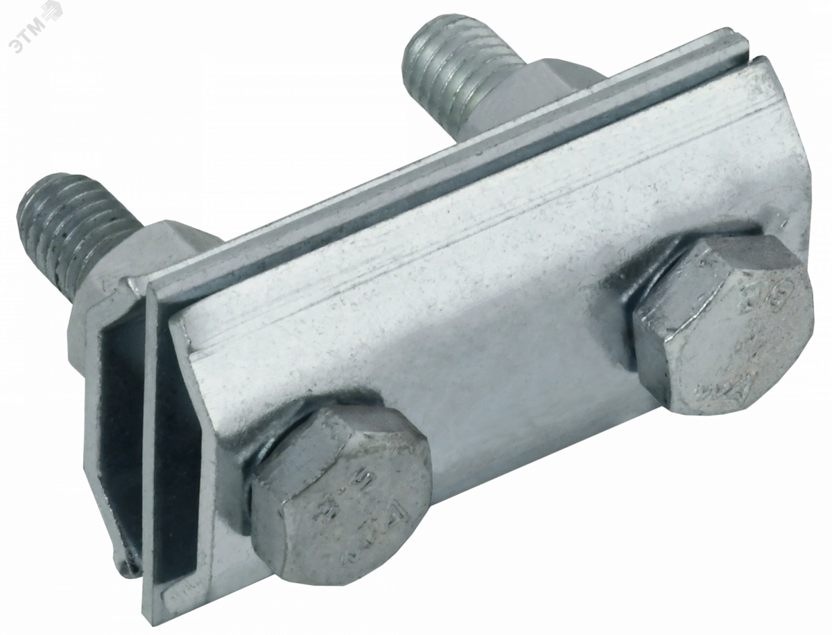 Зажим соединительный сквозной двойной пруток-пруток предназначен для соединения круглых проводников. Способен зажимать проводники как соосно, так и параллельно друг другу. Состоит из трёх пластин и зажимных болтов с гайками. Двухрядная конструкция соединителя позволяет зажимать до 4-х проводников в соединении. Материал корпуса - сталь горячеоцинкованная.