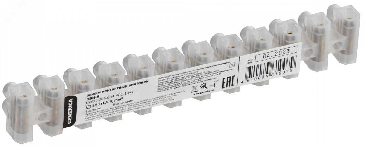 Зажим контактный винтовой типа ЗВИ товарного знака GENERICA предназначен для электрического и механического соединения одножильных и предварительно подготовленных многожильных медных проводников, сечением от 1,5 до 4 мм2 в цепях переменного и постоянного тока.
