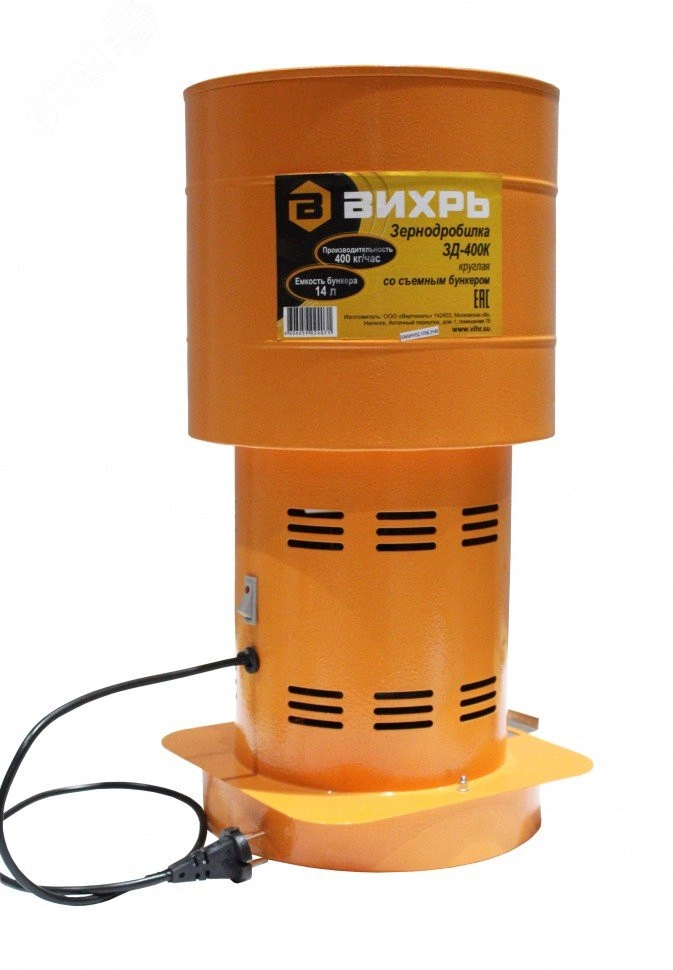 Зернодробилка ВИХРЬ ЗД-400К предназначена для переработки всех видов сухого фуражного зерна, включая масленичные культуры и другой подобной сельскохпродукции при подготовке кормов для животных и птиц.