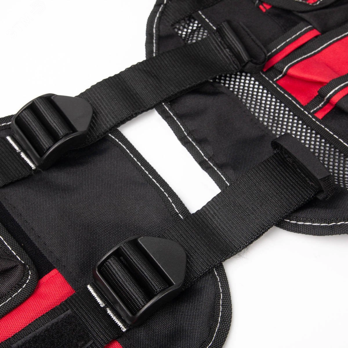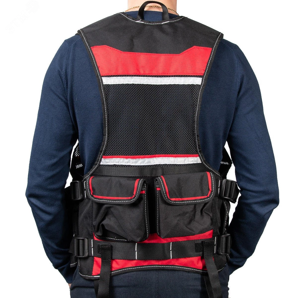 Материал - дышащий сетчатый синтетический материал и влагозащитный полиэстер 1680D Оксфорд. Конструкция - 2 нагрудных кармана с 5 отделениями в каждом 2 передних кармана с 10 отделениями в каждом 2 кармана на липучках на пояснице 2 петли на липучках для подвешивания габаритного инструмента, 2 нагрудных кармана с 5 отделениями в каждом, 2 передних кармана с 10 отделениями в каждом, 2 кармана на липучках на пояснице, 2 петли на липучках для подвешивания габаритного инструмента. Четыре широких боковых ремня для регулировки объема жилета. Широкие липучки на плечах для регулировки длины жилета. Прочная усиленная молния с крупными звеньями. Светоотражающие полосы на плечах, груди и спине. Легкий и универсальный жилет монтажника с регулировкой по объему и длине. Легкая вентилируемая сетчатая ткань на спине. Петля для подвешивания. Вес - 600 г