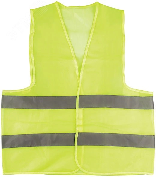 Жилет с двумя горизонтальными световозвращающими полосами. Используется для улучшения видимости при работе в темное время суток. Материал - 100% ПЭ. Упаковка п/э пакет с подвесом.