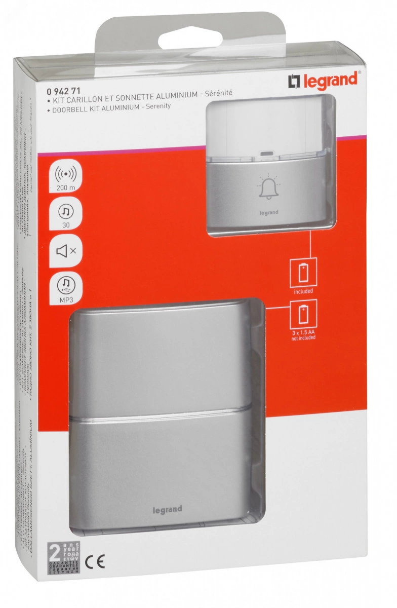 Звонок беспроводной - комплект Премиум - 30 рингтонов - дальность 200 м - цвет алюминий