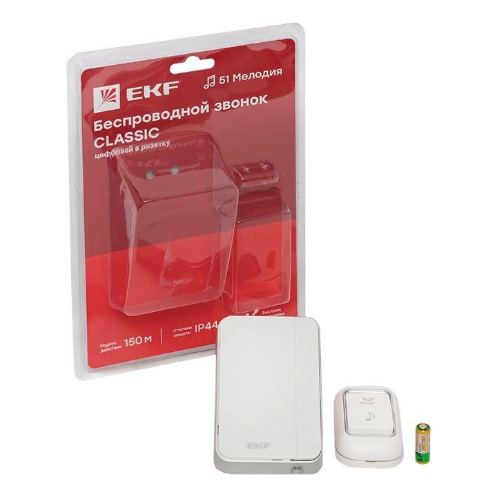 Полное описание: Звонок беспроводной 51 мелод. с индик. 4 уровня в розетку бел./сер. Classic EKF DBS-002