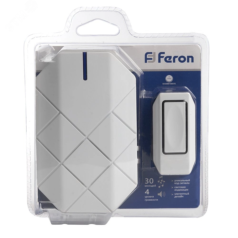 Беспроводной дверной звонок Feron E-377 с кодировкой сигнала исключает ложные срабатывания звонка при нажатии на кнопку другого звонка установленного поблизости. Звонок работаeт от батареек, стильный и удобный в применении - достаточно закрепить кнопку двусторонним скотчем на стене перед входной дверью, а основной механизм можно разместить в помещении.